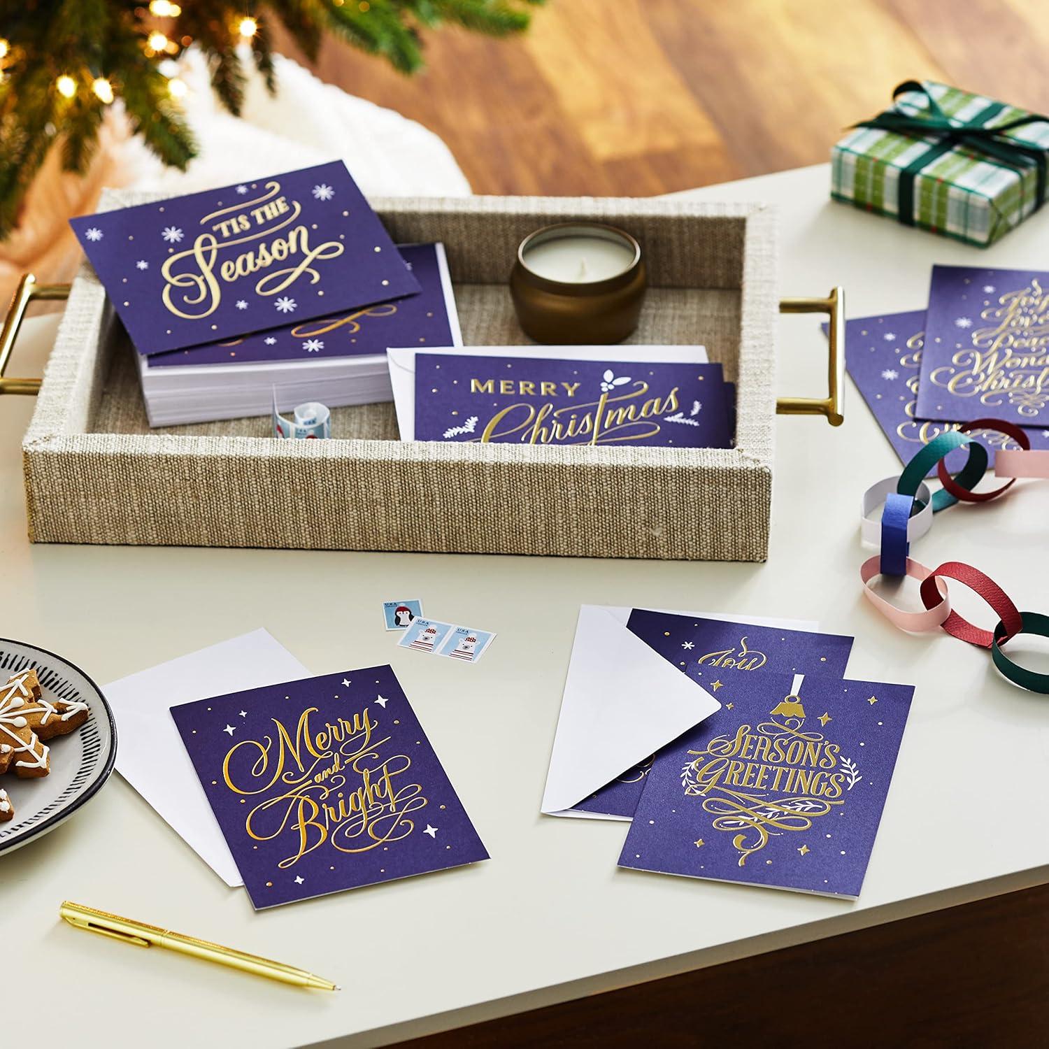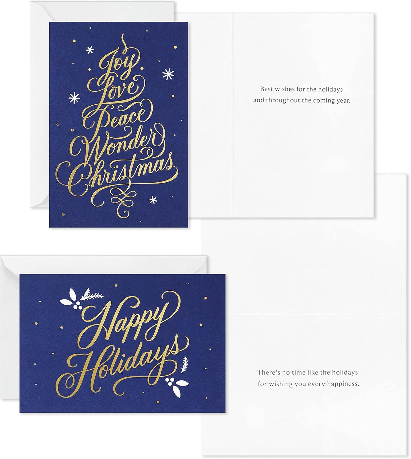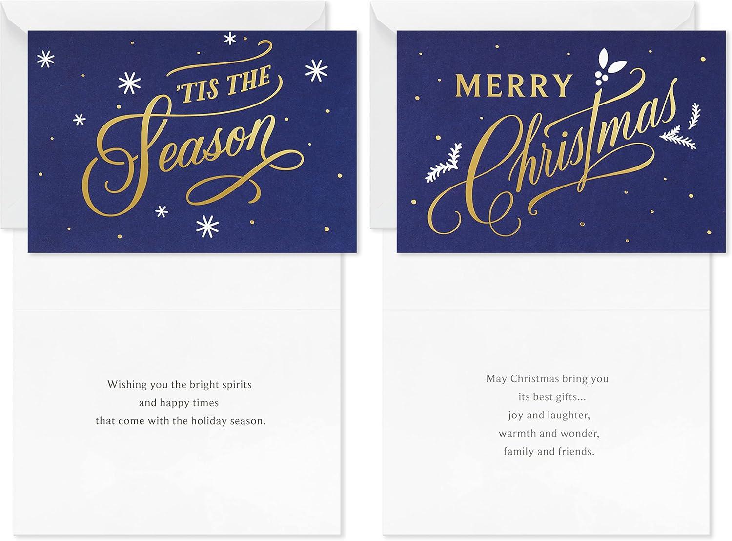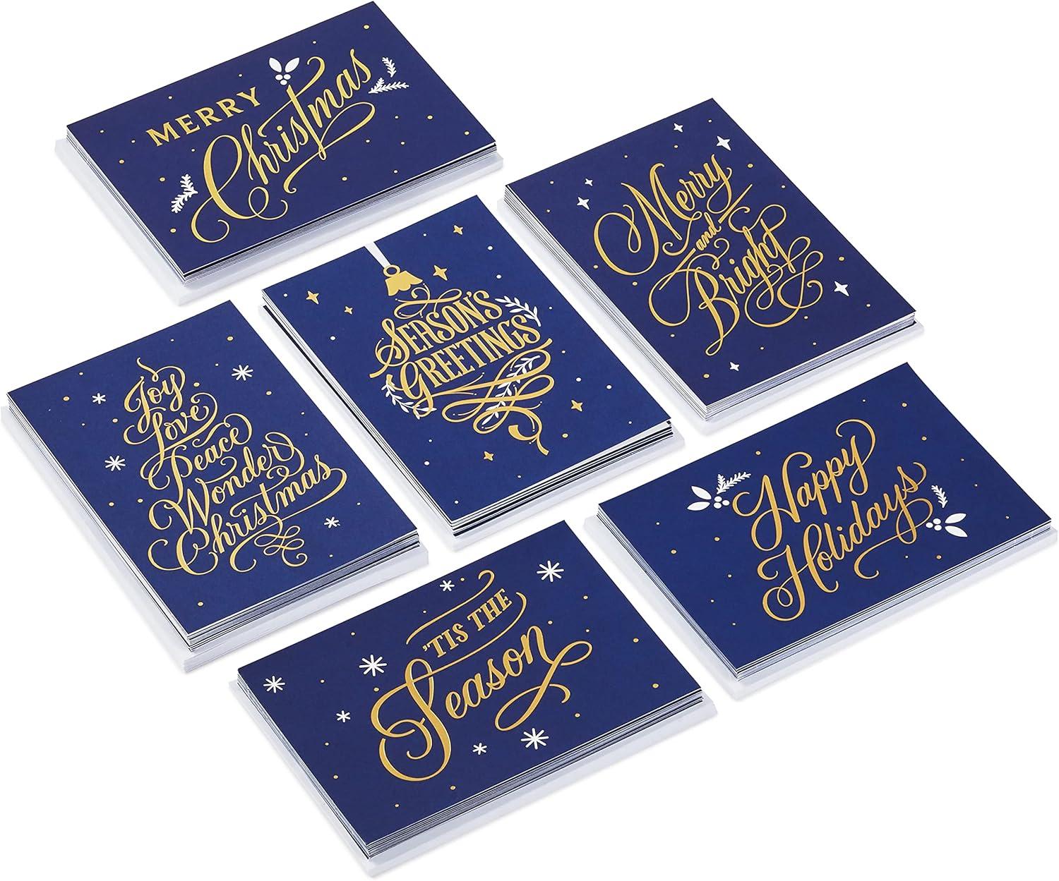 Hallmark Boxed Christmas Cards Assortment, Blue and Gold Holidays (6 Designs, 72 Cards with Envelopes)(Elegant Blue and Gold Holiday Card Assortment)