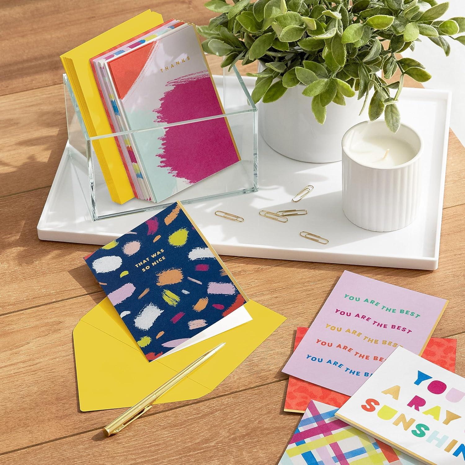 Send a heartfelt thank you note to friends or family with these fun thank you note cards. All 24 cards in this boxed set are blank inside, giving you plenty of space for writing a personalized message. A handwritten note is the perfect way to let someone know you appreciate their generosity. Bulk pack makes writing lots of thank yous easy as can be, making this the perfect addition to your stationery supply. The Hallmark brand is widely recognized as the very best for greeting cards, gift wrap, and more. For more than 100 years, Hallmark has been helping its customers make everyday moments more beautiful and celebrations more joyful.