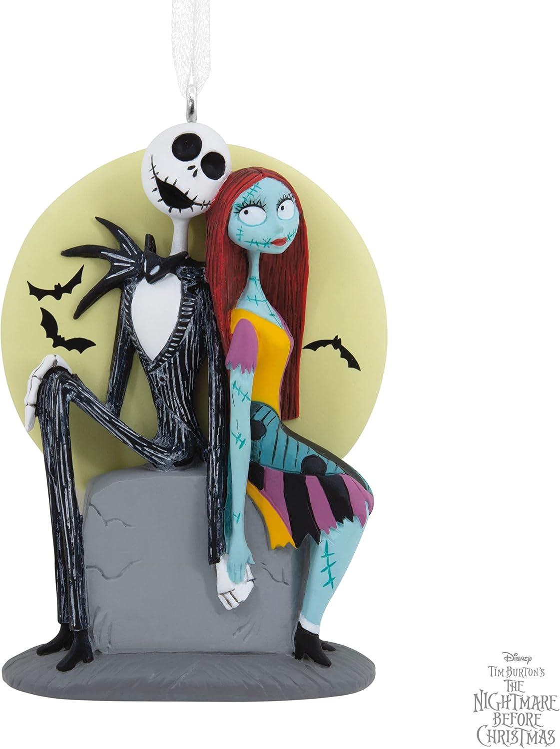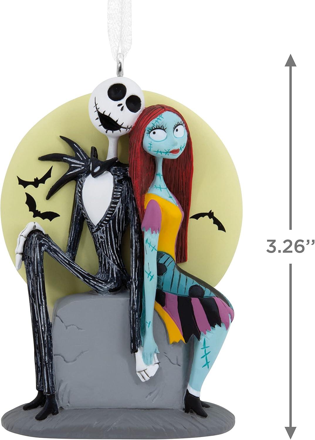 Scare up some holiday fun with this Hallmark Christmas ornament that features Jack Skellington and his stitched-up sweetheart, Sally, from Disney Tim Burton's “The Nightmare Before Christmas” sitting on a tombstone.