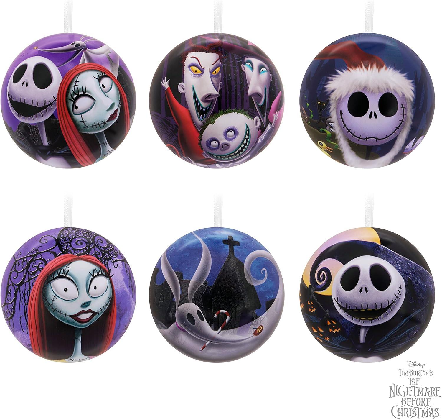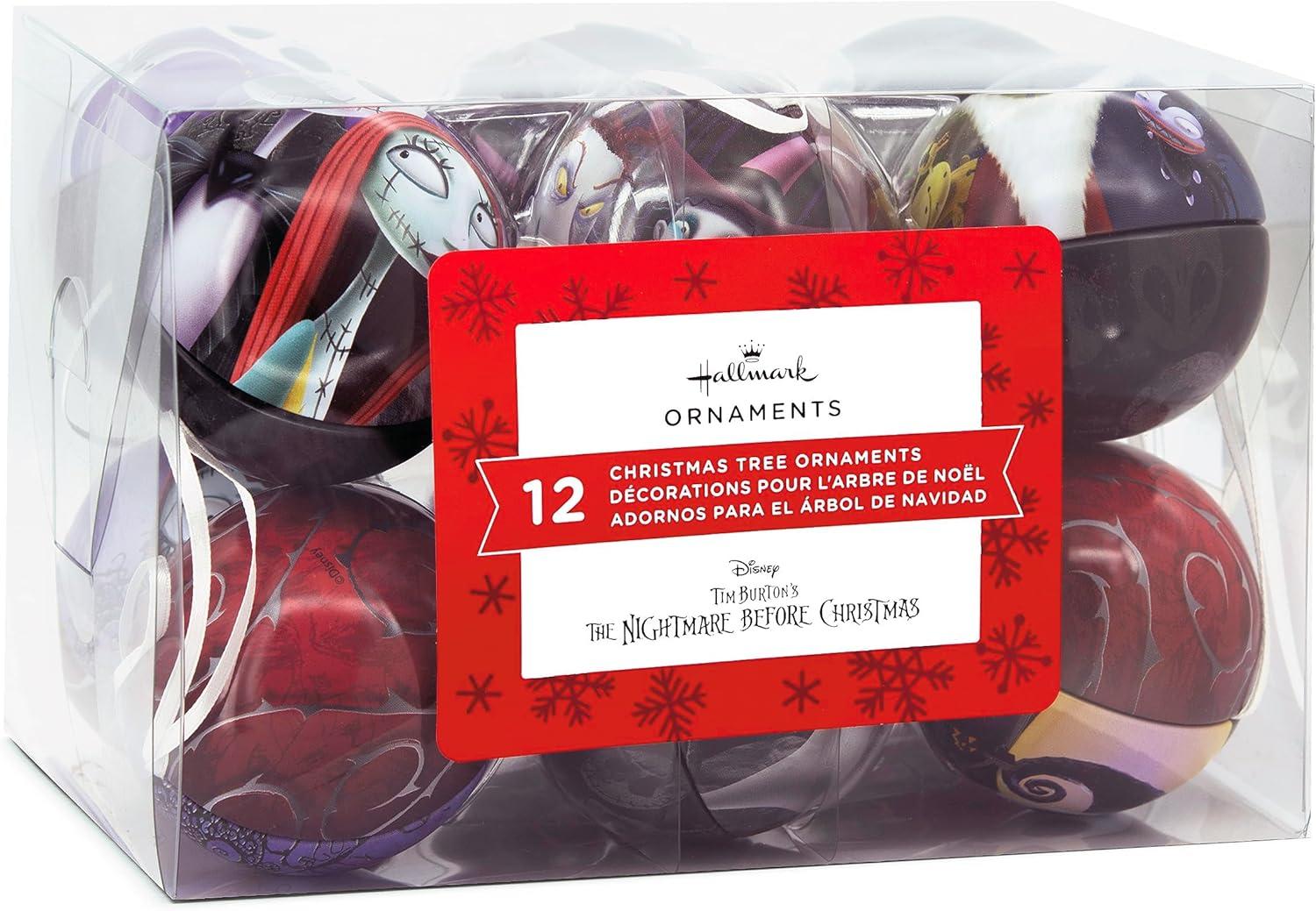 Hallmark Disney Tim Burton’s The Nightmare Before Christmas Tin Ball Christmas Ornaments, Set of 12(Set of 12)