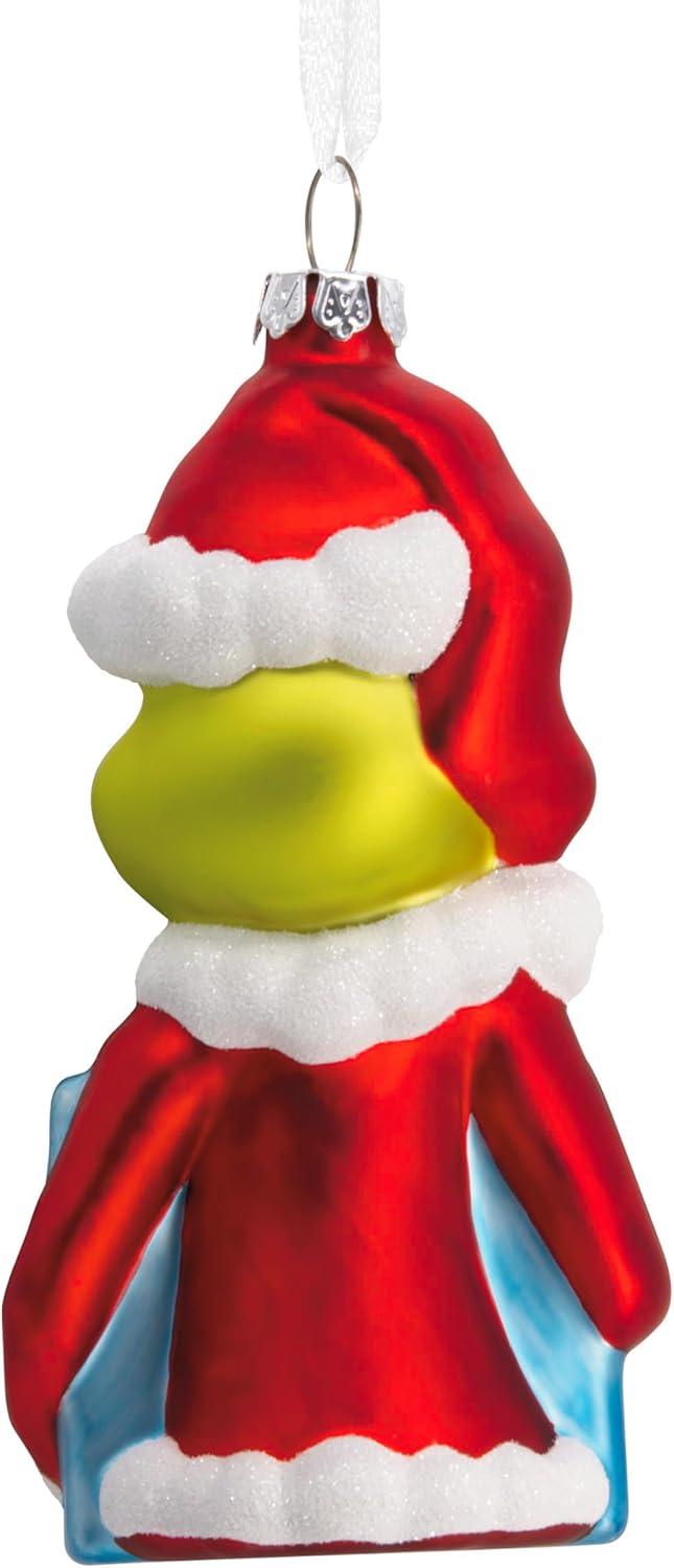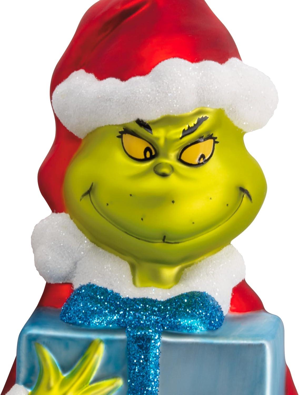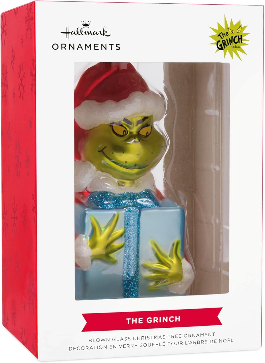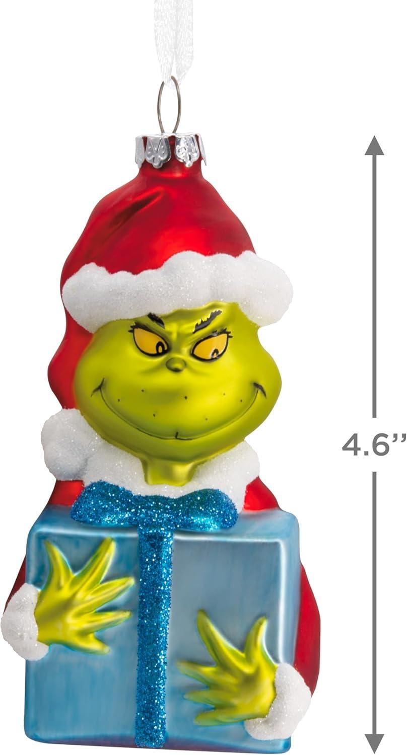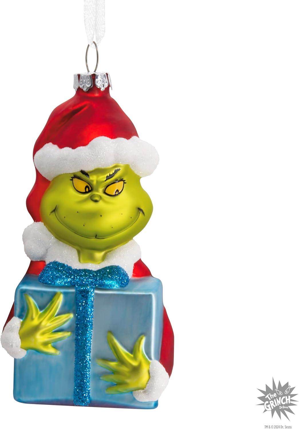 Hallmark Dr. Seuss’s How The Grinch Stole Christmas! Grinch with Present Christmas Ornament, Blown Glass