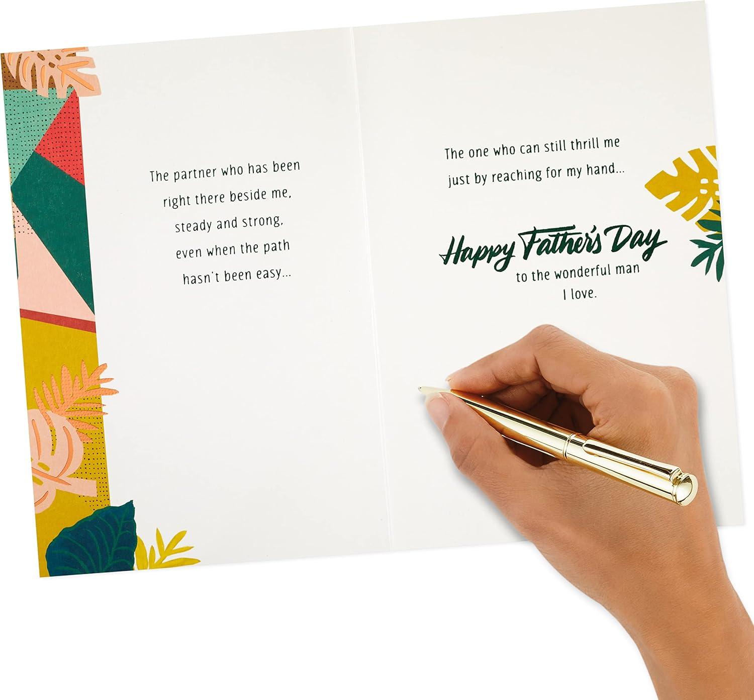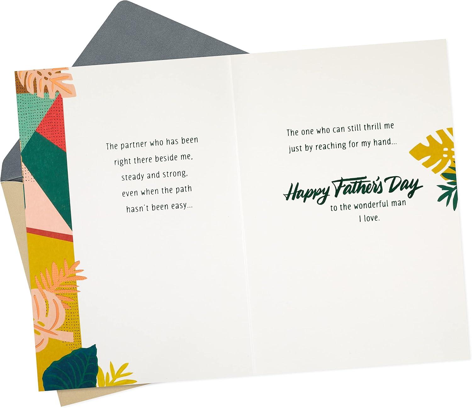 Cover features a colorful tropical leaf design accented with metallic foil. Message reads: “Happy Father's Day to the man I feel so blessed to be walking through life with—the friend who has laughed and dreamed with me as we've made our way together . . .”