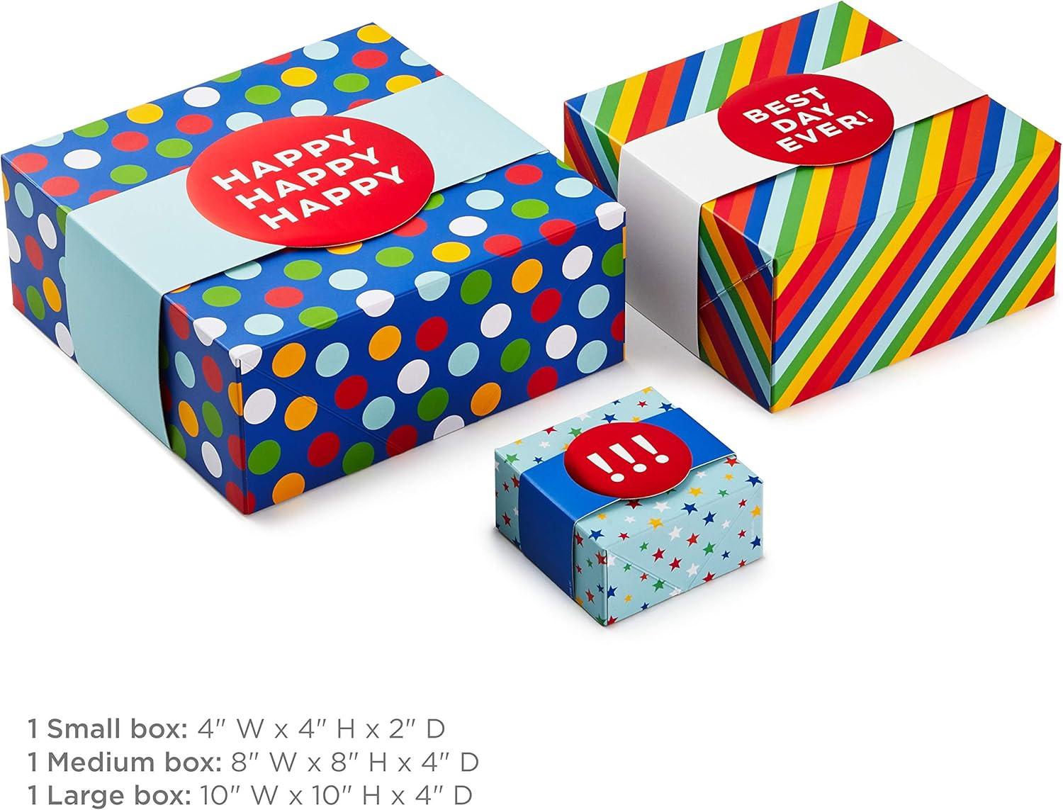 Dress up your gifts with charming, coordinating gift boxes in assorted sizes. This gift box set includes 3 gift boxes (1 small, 1 medium and 1 large) with matching wrap bands. Decorated in a gorgeous floral patterns, stripes and gold accents, these boxes are perfect for weddings, birthdays, bridal showers, baby showers, Mother's Day and more. Great for holding a variety of presents including gift cards, a small photo frame, clothing or books. The Hallmark brand is widely recognized as the very best for greeting cards, gift wrap, and more. For more than 100 years, Hallmark has been helping its customers make everyday moments more beautiful and celebrations more joyful.