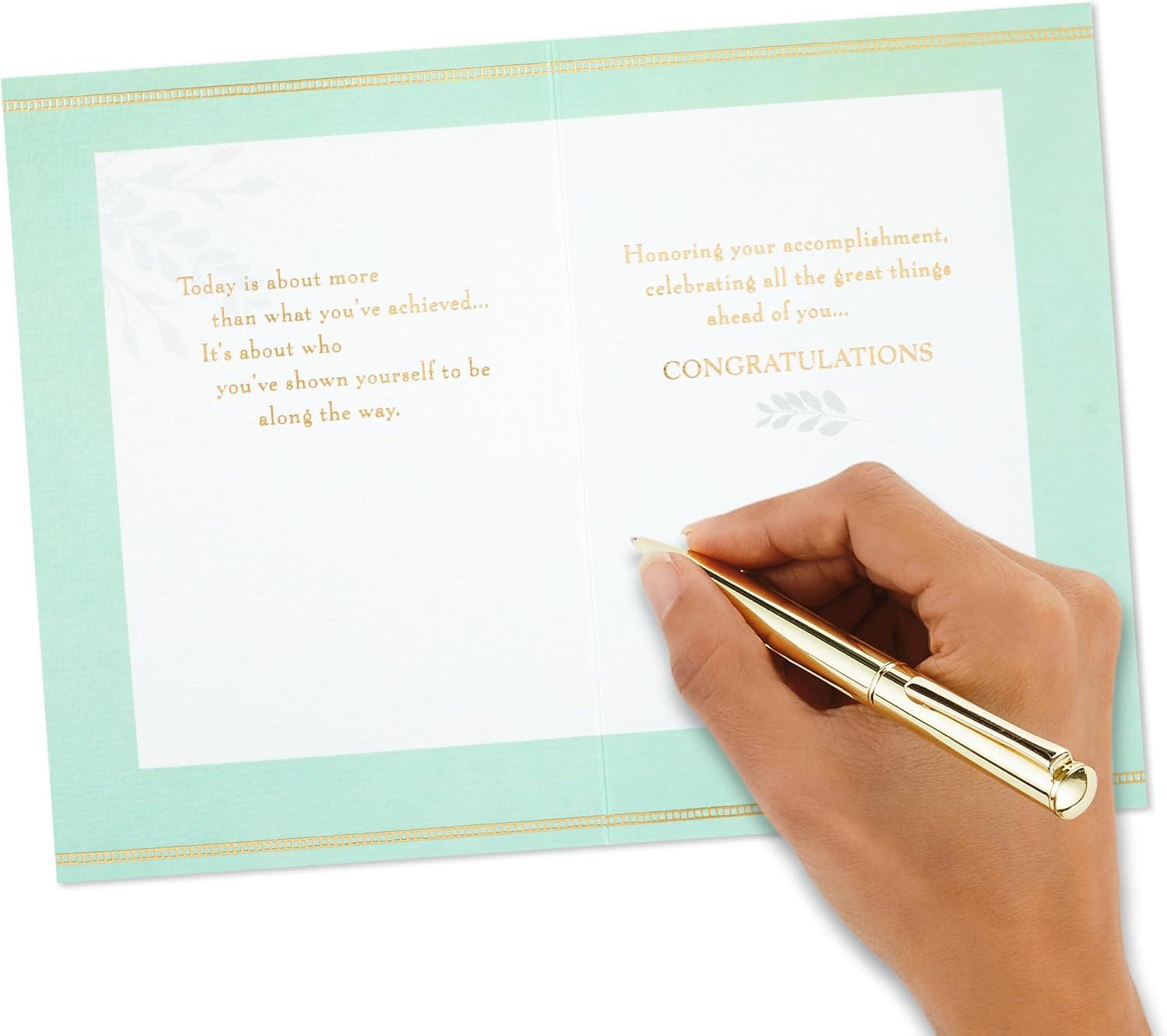 Let your friends and family know you're sharing in their excitement with a celebratory graduation card. With a foil and glitter accented design and thoughtful message inside, it's an elegant accompaniment to a graduation gift or a perfect money or gift card holder. There's nothing like a handwritten note to commemorate starting a new chapter in life, and this card is a great way to express your excitement or pride. The Hallmark brand is widely recognized as the very best for greeting cards, gift wrap, and more. For more than 100 years, Hallmark has been helping its customers make everyday moments more beautiful and celebrations more joyful.