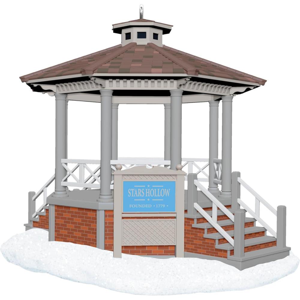 Relive all the memorable moments as Lorelai and Rory navigated life and love in the iconic, fast-talking television series “Gilmore Girls.” This Christmas tree ornament features the charming gazebo in the center of the Stars Hollow town square and centerstage to the popular show. Press the button to hear the decoration play an instrumental version of “Where You Lead.” Battery operated. With unparalleled artistry and exceptional detail, Hallmark Keepsake Christmas ornaments are perfect for preserving precious memories, commemorating special milestones and celebrating individual hobbies and interests.