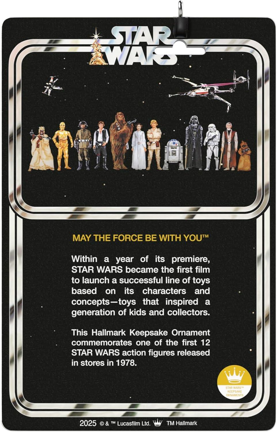 Within a year of its premiere, “Star Wars” became the first film to launch a wildly successful line of toys based on its characters and concepts. Those toys inspired a generation of kids and collectors, including many of us on the Hallmark Keepsake Ornament team! Featuring iconic vintage styling, this Christmas tree ornament commemorates one of the first 12 “Star Wars” action figures released in stores in 1978: Luke Skywalker. With unparalleled artistry and exceptional detail, Hallmark Keepsake Christmas ornaments are perfect for preserving precious memories, commemorating special milestones and celebrating individual hobbies and interests.