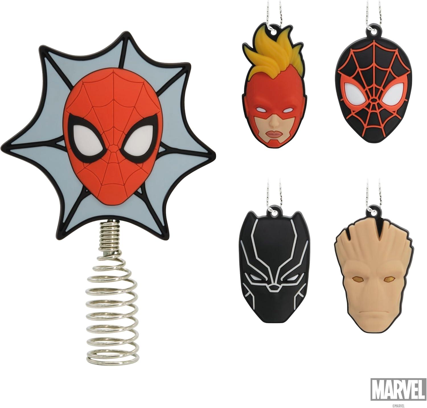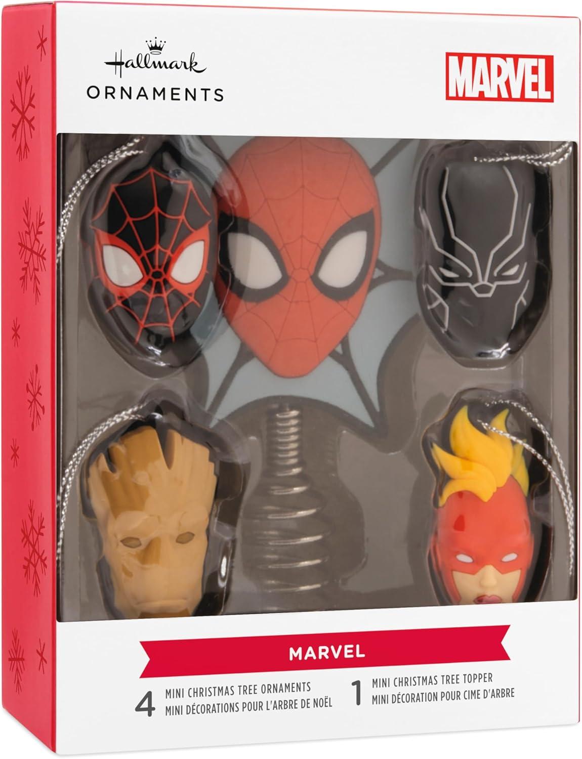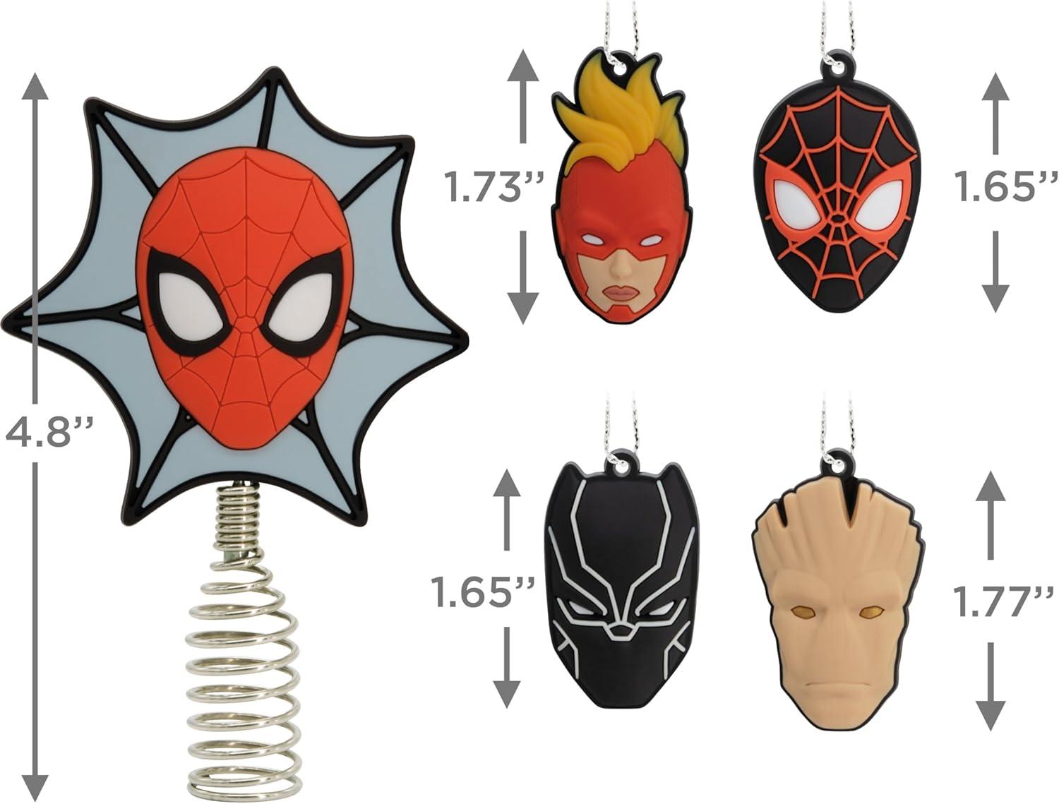 Hallmark Marvel Super Heroes Mini Christmas Tree Topper and Ornaments, Set of 5(Mini Tree Topper with Ornaments)