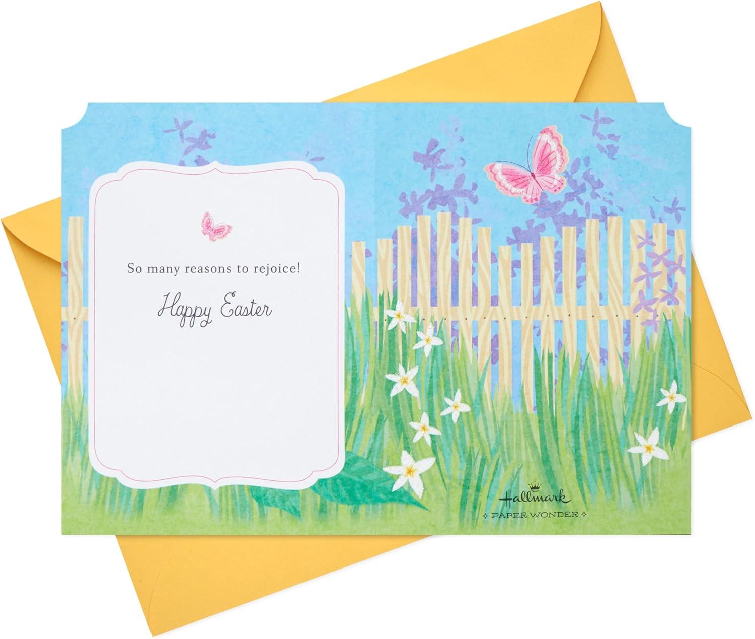 Easter card measures 5.8″ x 8.3″and comes with a coordinating envelope. Card may require extra postage. Printed on high quality paper stock, Hallmark's greeting cards are made with paper from well-managed forests.