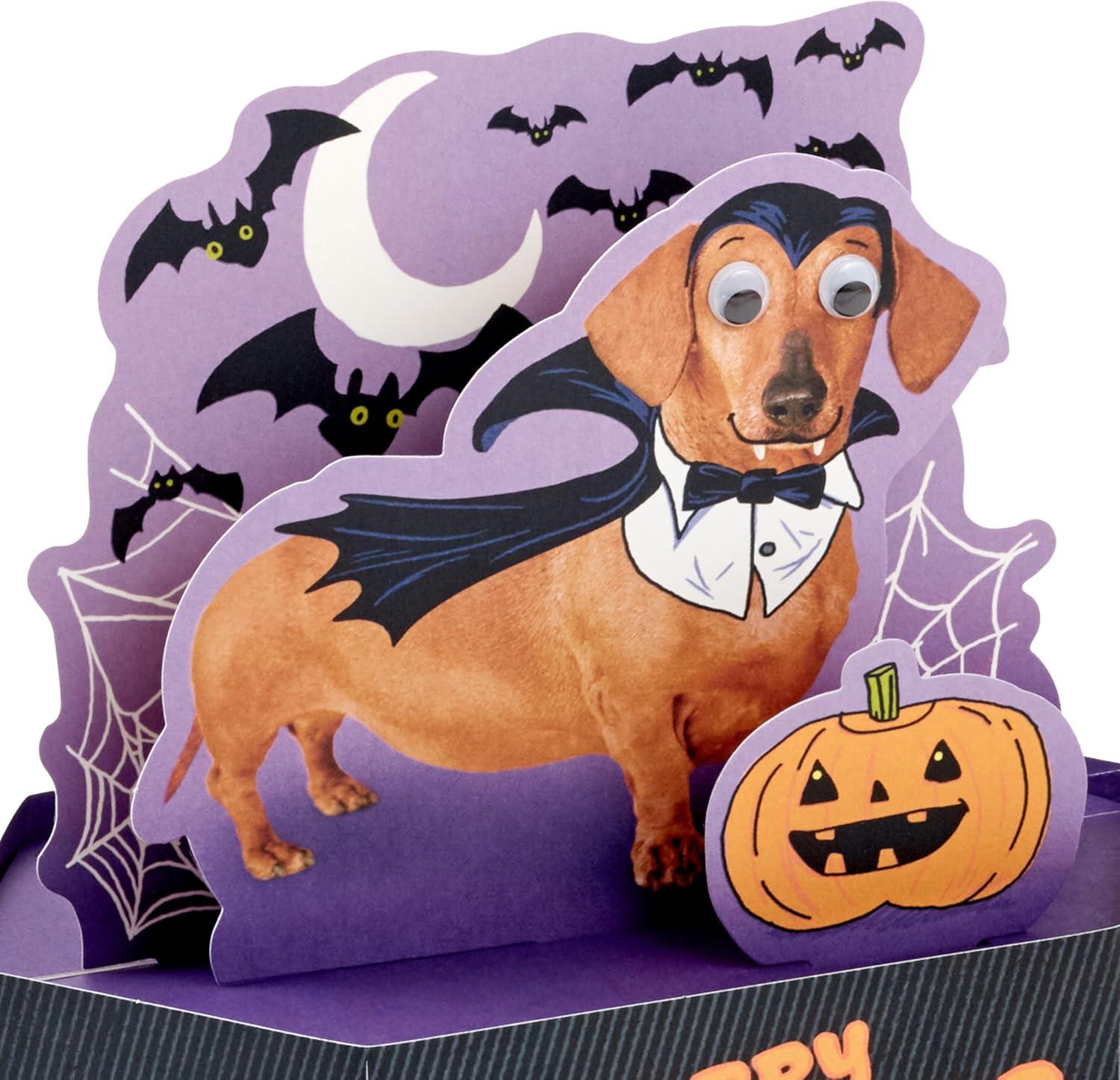 Celebrate spooky season with this funny pop-up Halloween card. Featuring a cute vampire dog design and punny sentiment, this pop-up card is perfect for kids, grandchildren, nieces, nephews, siblings and more. Paper Wonder greeting cards are mini masterpieces featuring three-dimensional scenes made of layers of intricate laser-cut paper that create a moment of wonder and lasting celebration. The Hallmark brand is widely recognized as the very best for greeting cards, gift wrap, and more. For more than 100 years, Hallmark has been helping its customers make everyday moments more beautiful and celebrations more joyful.