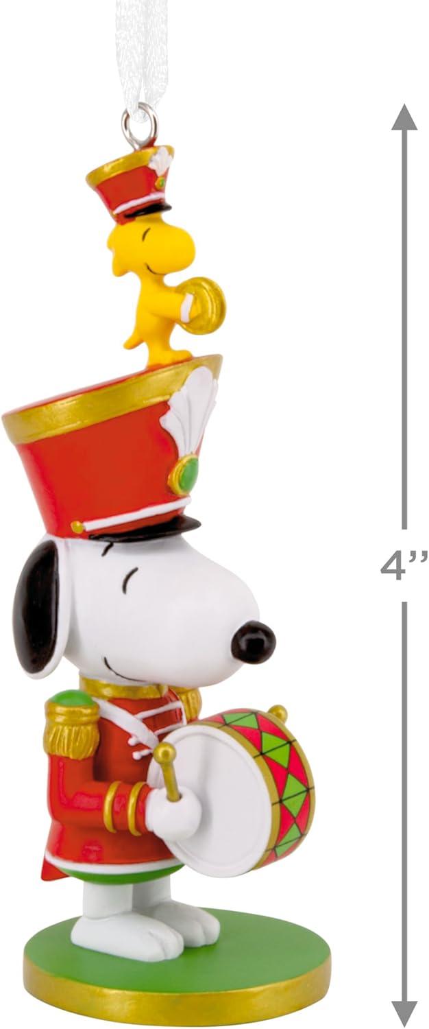Snoopy and Woodstock are ready to march some Christmas cheer into your holidays! Peanuts fans will love this Christmas tree ornament featuring a stylized design of Charlie Brown's beloved beagle as a festive nutcracker. He's dressed in a red and green toy soldier outfit with a drum and his feathered friend perched on his hat. Hallmark Ornaments are a great way to commemorate hobbies, life events and individual interests in entertainment, sports and more. Each festive and collectible ornament is perfect for sharing with family and friends.