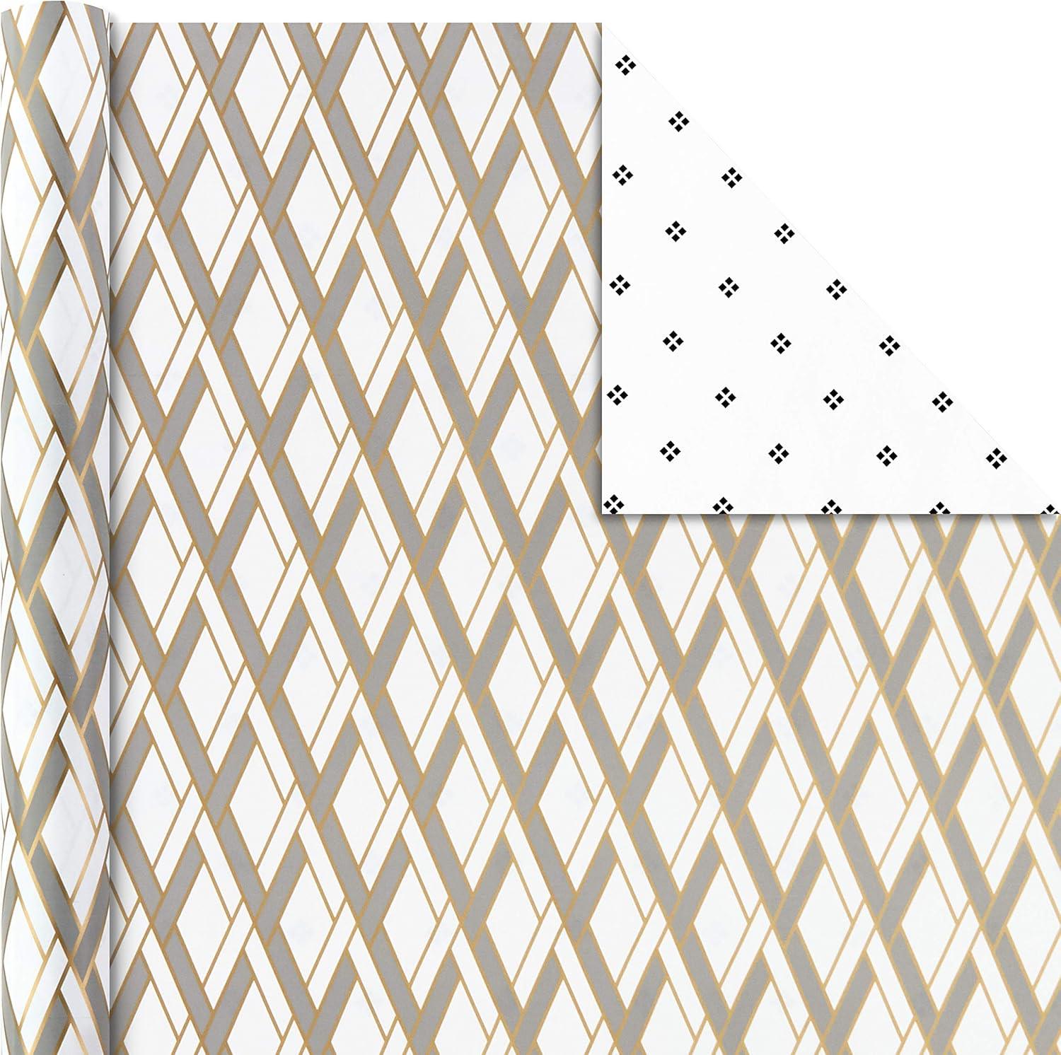 This all-in-one gift wrapping set includes 3 rolls of reversible wrapping paper, 30 yards of mini ribbon and 36 coordinating sticker gift tags to address your packages with style. Modern and elegant patterns in black, white, gold and silver make wrapping presents for Christmas, weddings, engagements, birthdays, and everyday special occasions quick, easy and beautiful. Each roll in this 3-pack of premium wrapping paper measures 30 inches wide by 16 feet long for a total of 40 square feet per roll. 120 total square feet in the set. The Hallmark brand is widely recognized as the very best for greeting cards, gift wrap, and more. For more than 100 years, Hallmark has been helping its customers make everyday moments more beautiful and celebrations more joyful.