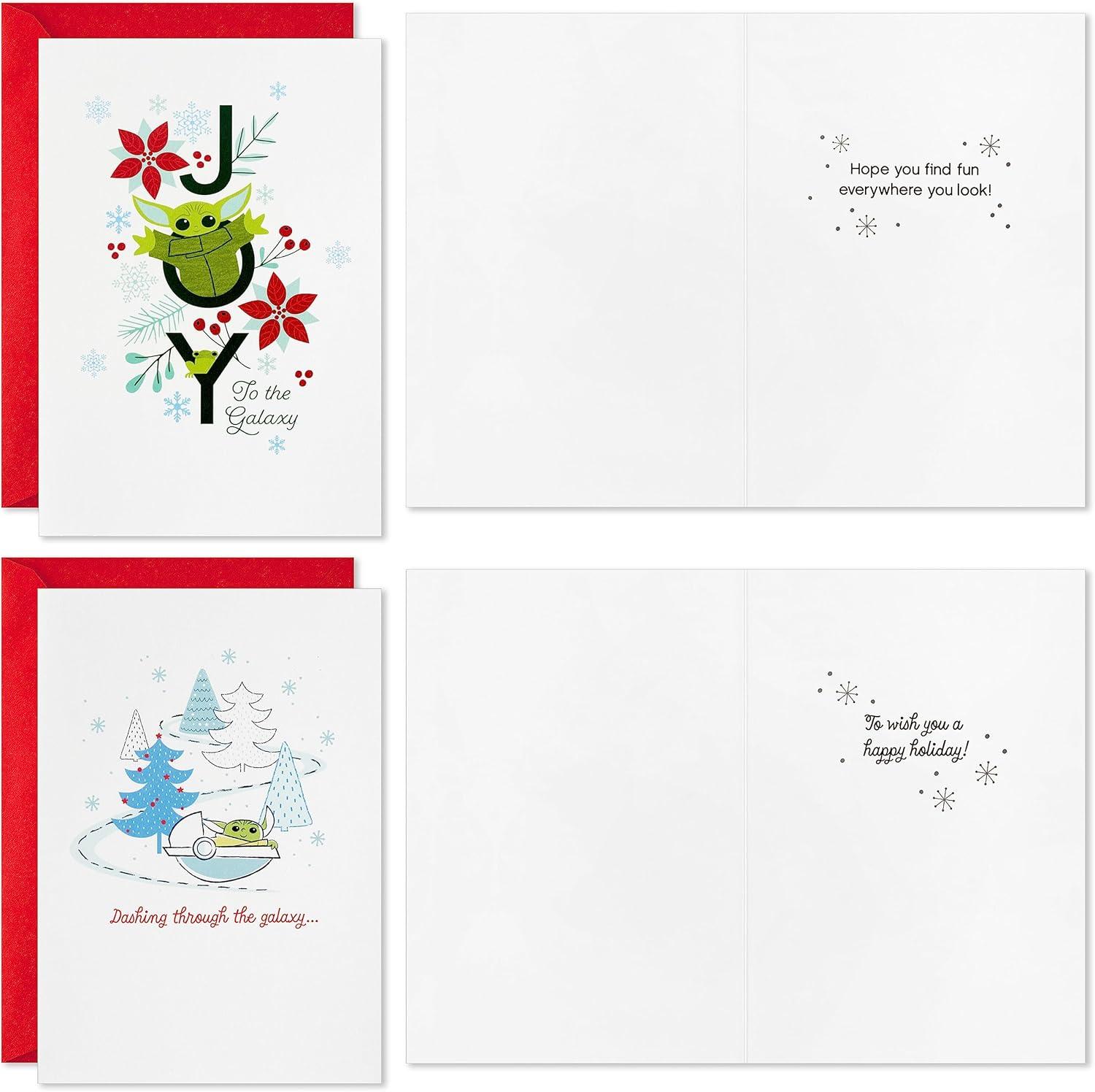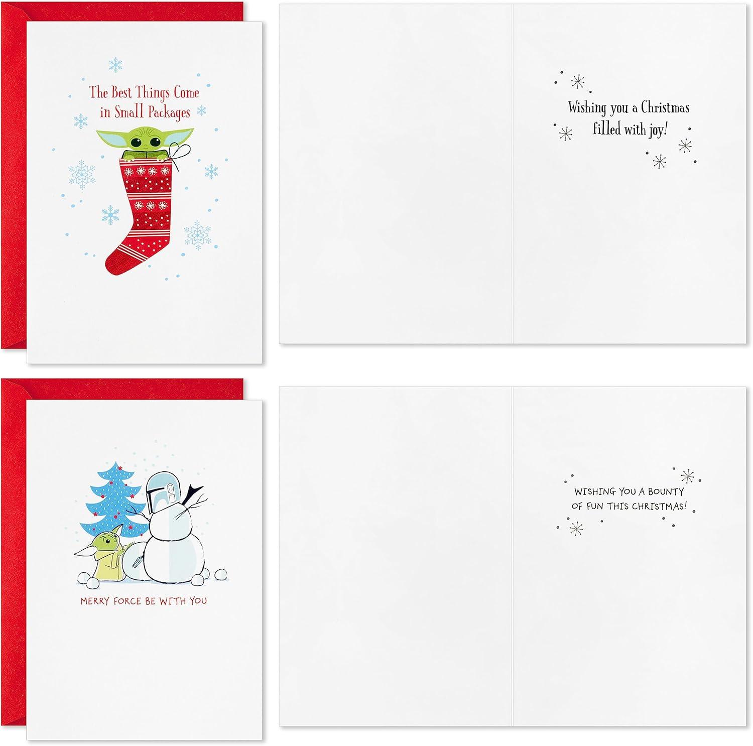 HALLMARK Star Wars The Mandalorian Boxed Christmas Card Assortment (16 Cards and Envelopes) Grogu, Baby Yoda, Snowman