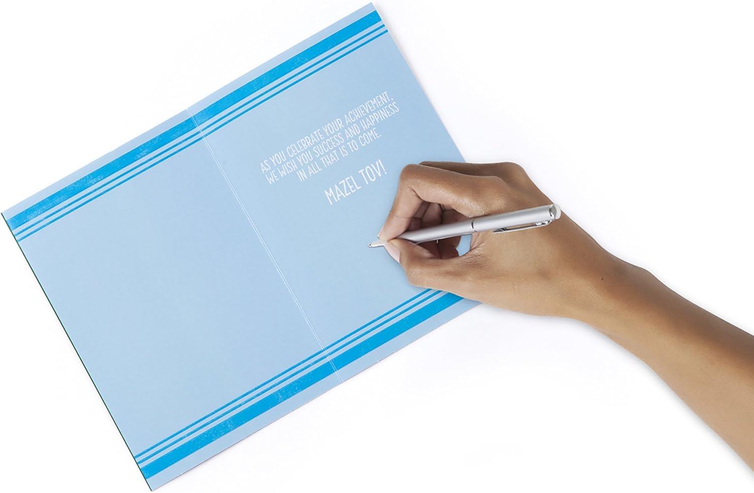 Send best wishes to a friend or family member on their Bar Mitzvah with the perfect card. A foil accented design paired with a sincere celebratory message makes this ideal for a gift accompaniment or a holder for gift cards, checks, or cash. Buy several packs to be ready for celebrations all year long. The Hallmark brand is widely recognized as the very best for greeting cards, gift wrap, and more. For more than 100 years, Hallmark has been helping its customers make everyday moments more beautiful and celebrations more joyful.