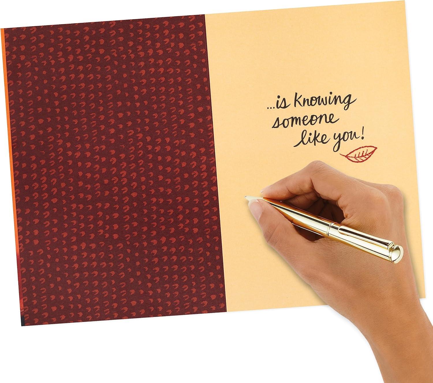 Give thanks and share joy this season by sending friends and family fun Fall greeting cards. Featuring a wood-grain cover with bold lettering and Thanksgiving icons like a turkey or cornucopia, these cards are sure to make your parents, grandparents, coworkers, neighbors, or friends smile. Buy in bulk to make sharing an autumn greeting even easier. The Hallmark brand is widely recognized as the very best for greeting cards, gift wrap, and more. For more than 100 years, Hallmark has been helping its customers make everyday moments more beautiful and celebrations more joyful.